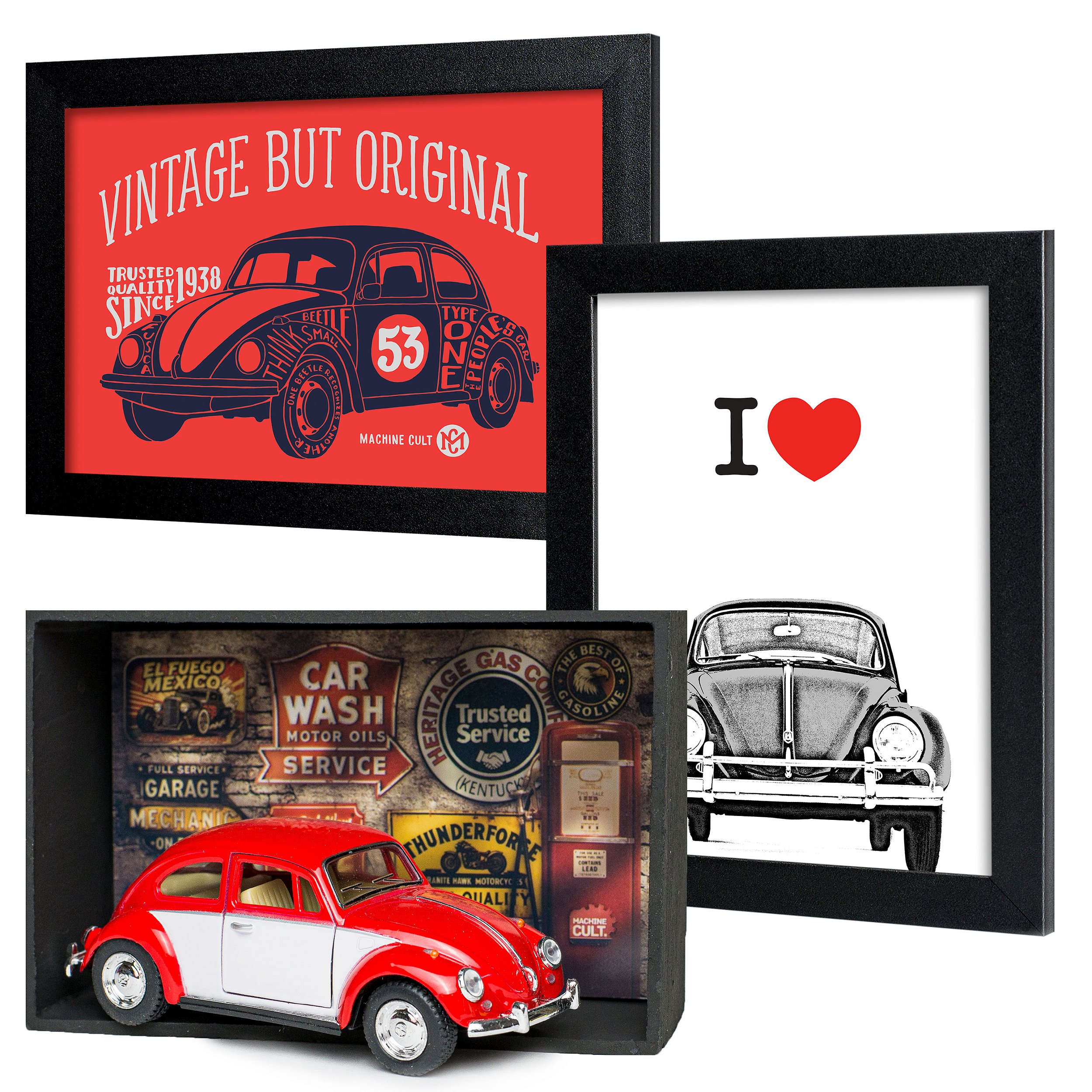 Ao comprar este kit você receberá os itens apresentados na foto (01 miniatura fusca, 01 expositor e 02 quadros). Grátis um cartão postal. Detalhes da Miniatura Fusca 1967: réplica em escala 1:32, marca Kinsmart, comprimento aproximado 13cm, rodas giram, possui fricção, portas abrem, pneus emborrachados, carroceria de metal, partes em plástico, miniatura oficial Fusca Volkswagen, produto novo, não acompanha caixa de transporte. Detalhes do expositor: altura 10cm, largura 15cm, profundidade da base 5cm, feito em madeira e pintura preta fosca (acabamento rústico). Detalhes do Quadro: 18x24cm, moldura em madeira, vidro, pendurador traseiro e imagem em impressão fotográfica. Marca: Machine Cult Miniaturas.