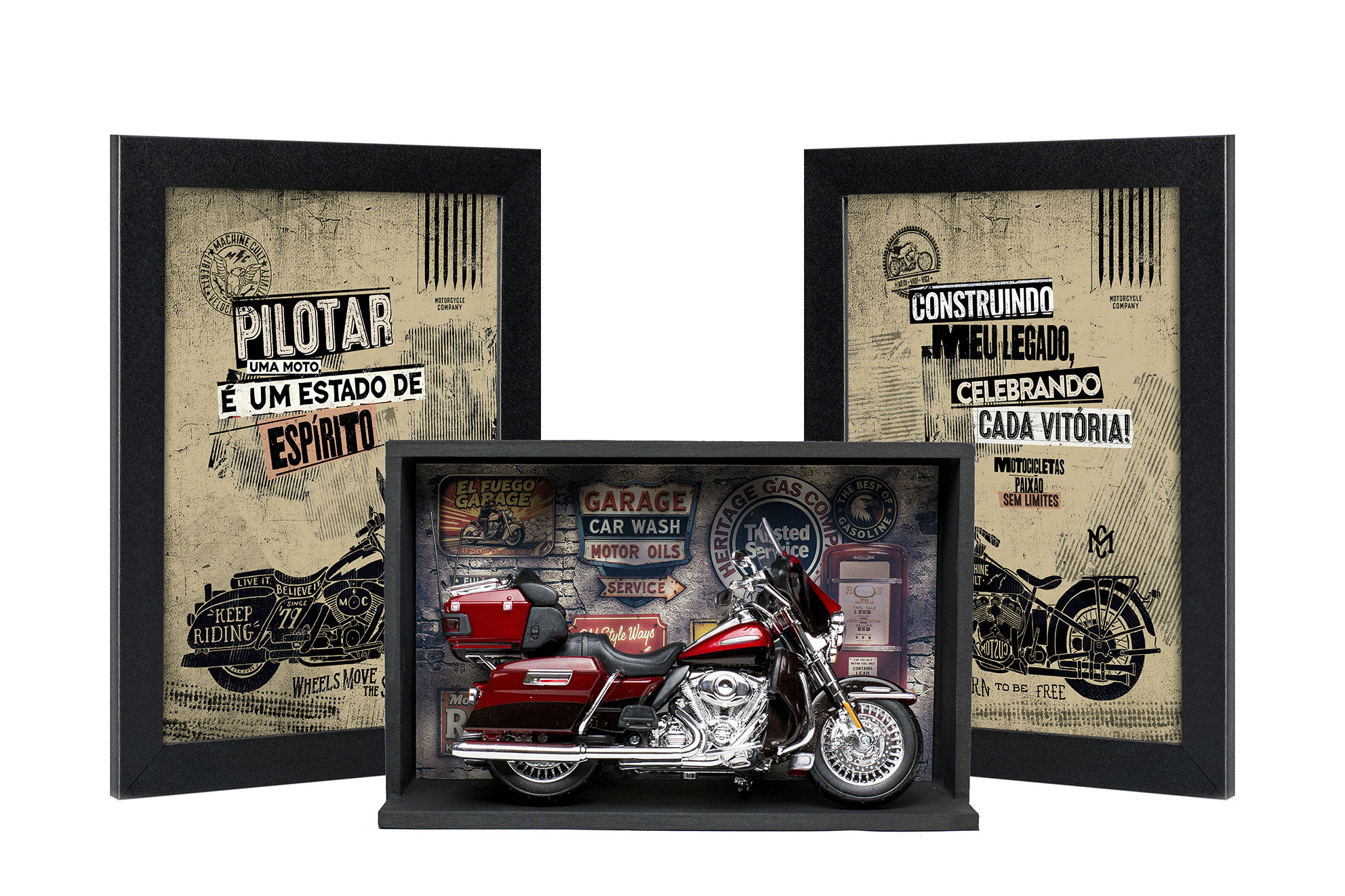 Kit Presente Harley-Davidson Electra Glide 1:12 + Expositor + Quadros